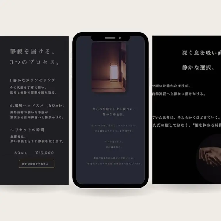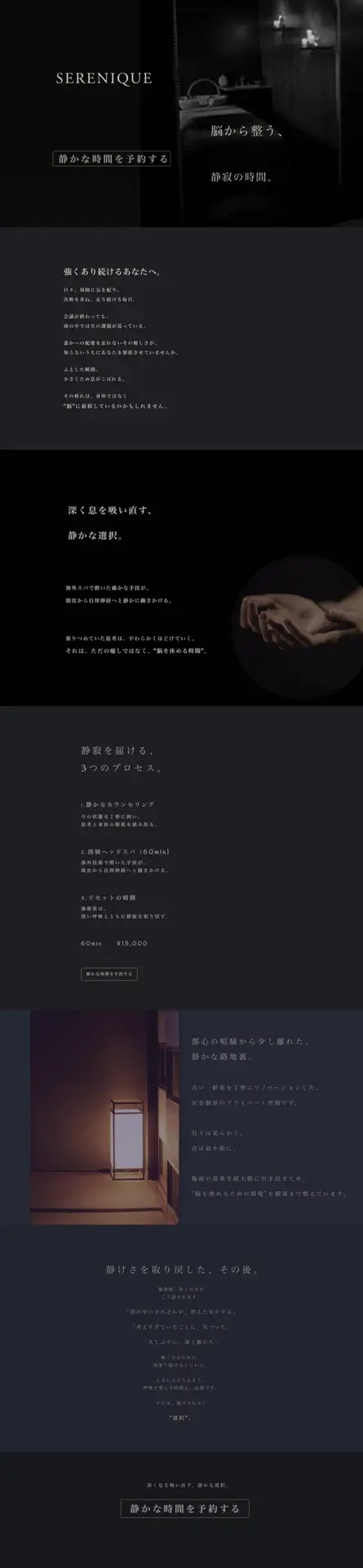 サイト全体は「静寂」「余白」「上質」をキーワードに、